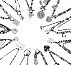 Colar Misturado por Kilo Vendido 40 ~ 50, titânio Aço, pérolas, pingentes, aço inoxidável, liga, Diamante, hip Hop,Sweet Estilo