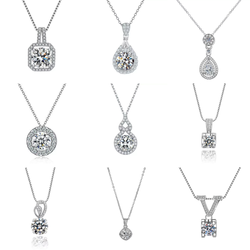 Atacado de colares de prata com alta de carbono pedra diamantes quadrados e Water - Drop Pear - Shaped Pingentes Femininos