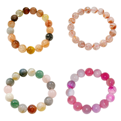 F Natural Rosa Quartzo Rutilado Pulseira frisada Semi-preciosa Pedra De Cristal Cura Energia Rosa Natural Pulseira Rutilado